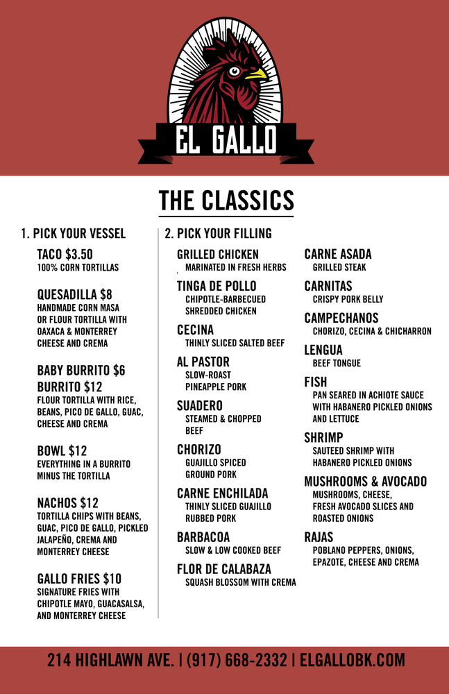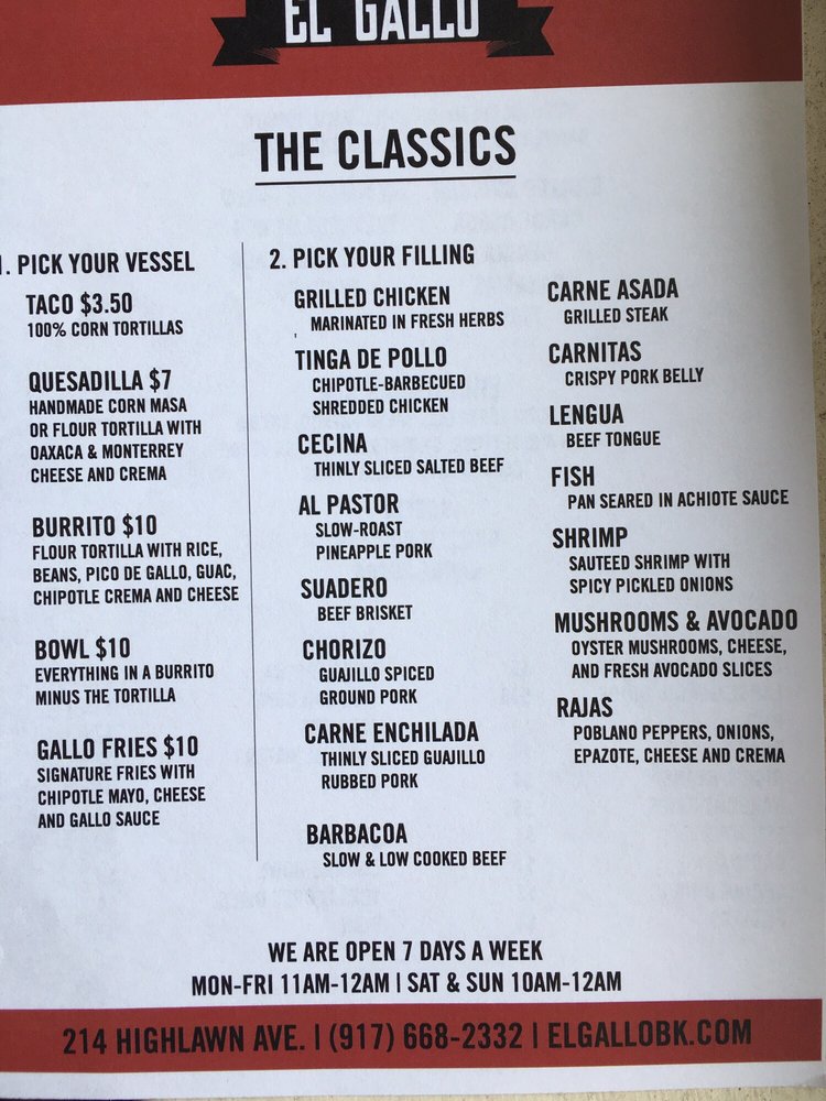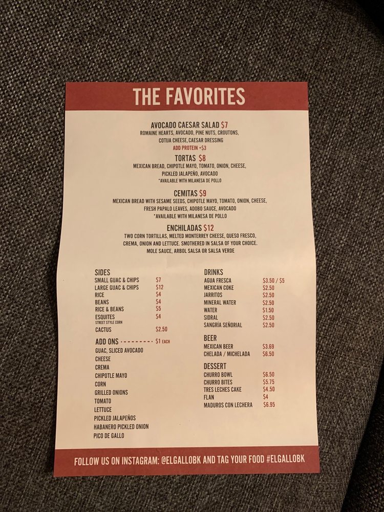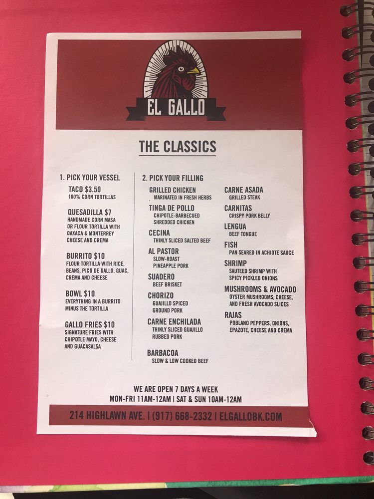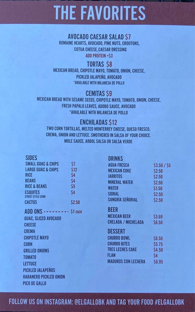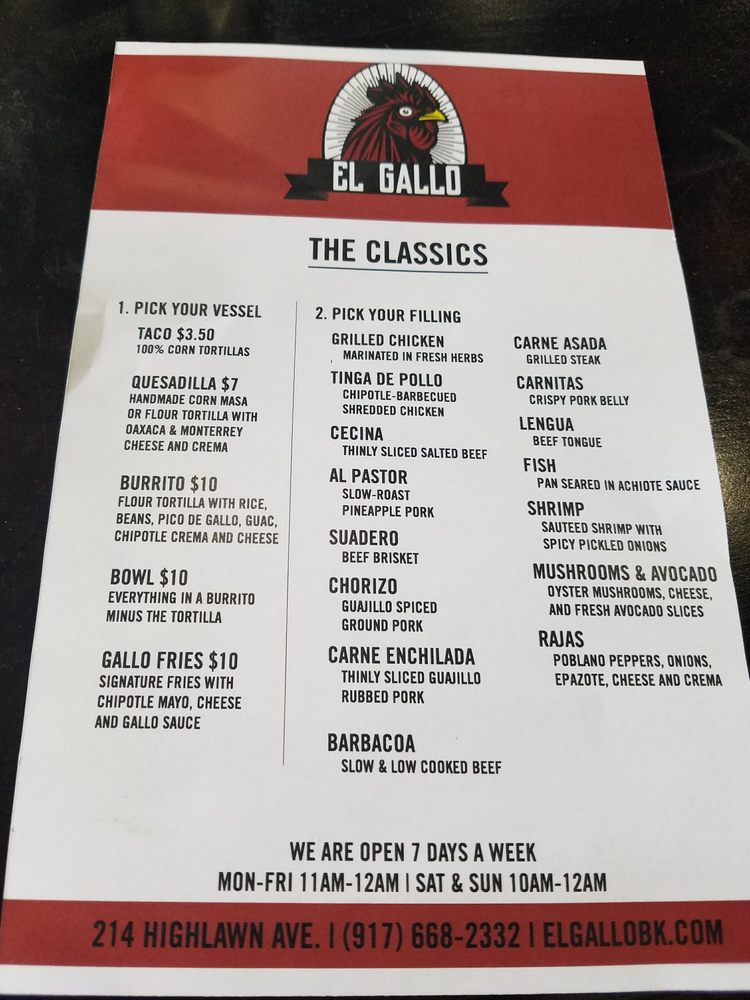 El Gallo Taqueria in Brooklyn, NY offers a diverse menu of Tex-Mex, New Mexican, and Mexican cuisine with options for all dietary preferences, including vegan and limited vegetarian choices. The restaurant provides various utilities such as delivery, takeout, reservations, and outdoor seating. Customers rave about the authentic flavors and handmade tortillas, making the tacos a must-try. The friendly service from staff members like Thalia, Dennis, and Oscar adds to the welcoming ambiance. Favorites include the Chorizo & Cheese bowl, Mexicana dish, and Baby Burrito with shrimp. The restaurant also serves delicious aguas fresas for a refreshing drink. Overall, El Gallo Taqueria receives high praise for its flavorful dishes, strong margaritas, and exceptional service. Whether you're craving breakfast, brunch, lunch, dinner, or late-night eats, this Latinx-owned establishment is sure to satisfy your cravings.